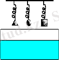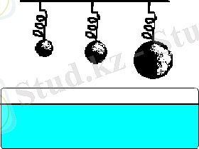 3 . Бірдей серіппеге ілінген жүктердің көлемдері мен массалары бірдей, бірақ пішіндері әр түрлі . Суға батырса қай серіппе көбірек қысқарады
