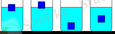 4. Суретте әр түрлі сұйыққа батырылған бірдей денелер берілген. Қай ыдыстағы сұйықтың тығыздығы көп