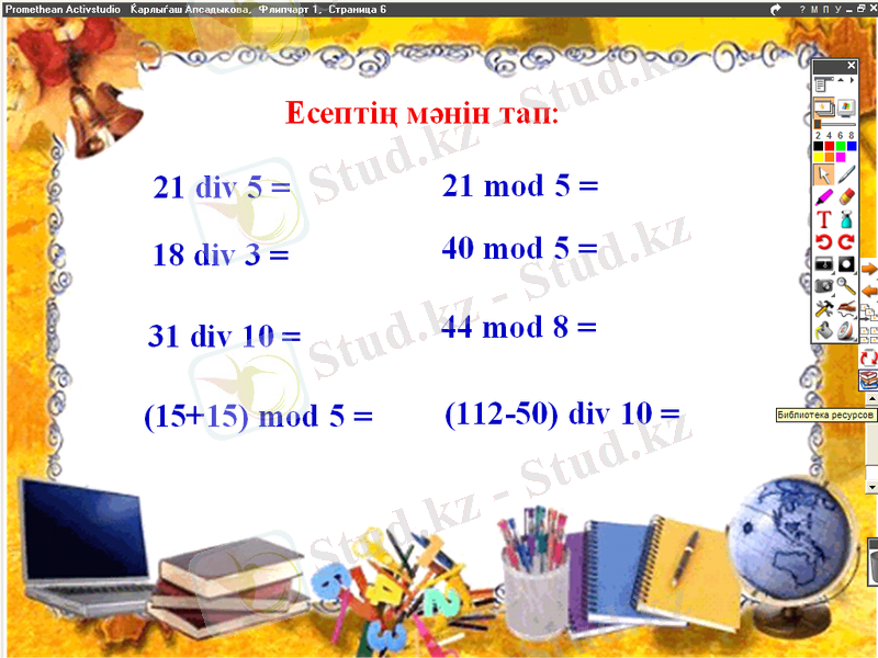 құрылғылар: компьютерлік сынып, интерактивтік тақта, электрондық оқулық