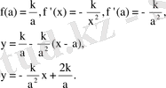 -у=k/x гиперболасына х а нүктесінде жүргізілген кез келген жанама координаттар осінен аудандары 2k-ға тең бірдей үшбұрыштар қиып түсіреді