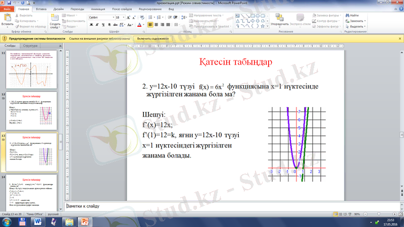 №2. функциясының графигіне 3 нүктесінде жүргізілген жанаманың теңдеуін жазыңдар, сызбасын орындаңдар.