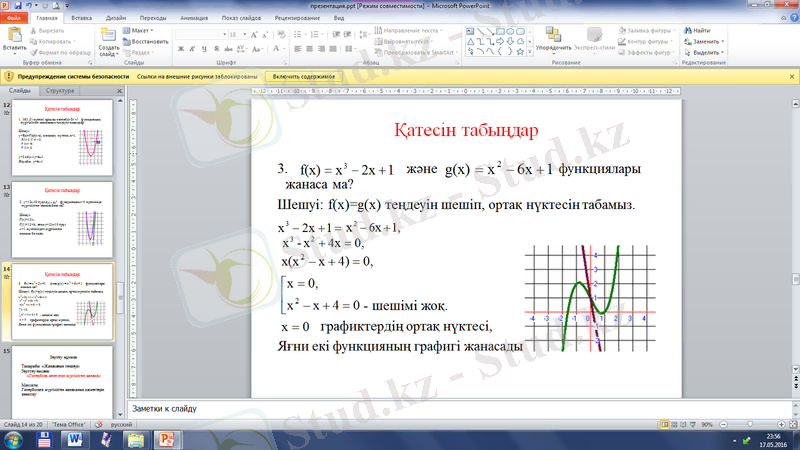 Жауабы: графиктердің ортақ нүктесі - қиылысу нүктесі де болуы мүмкін. Екі функция қиылысады