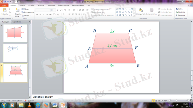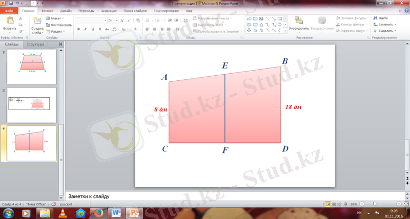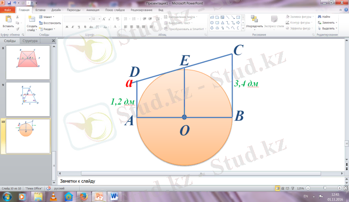 EO=(AD+BC) /2=(1. 2 дм +3. 4 дм) /2=