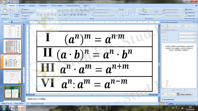 7-сыныпқа арналған ашық сабақ жоспары: Натурал көрсеткішті дәреже және оның қасиеттері
