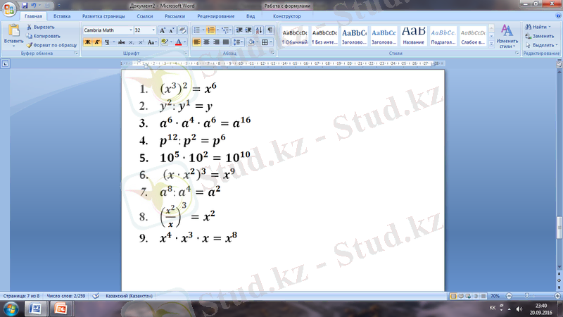 Формулаларды мысалдар келтіру арқылы дәлелдеу.