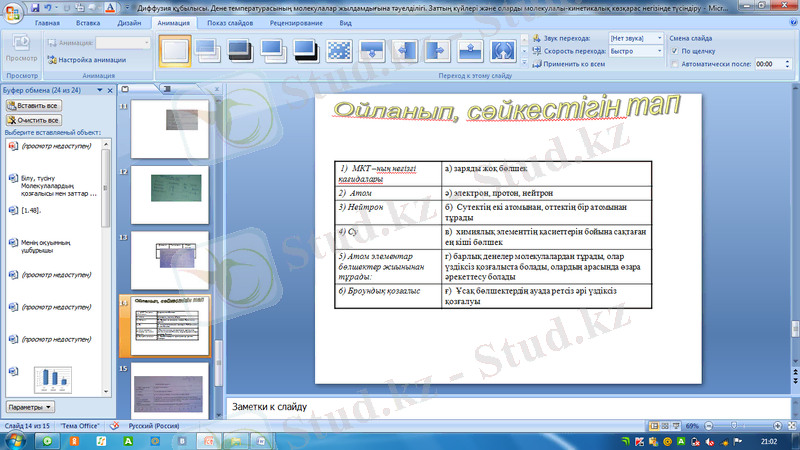 Молекулалардың қозғалысы. Диффузия. Заттың күйлері