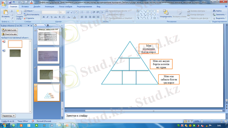Сабақтың тақырыбы:Диффузия құбылысы. Дене температурасының молекулалар жылдамдығына тәуелділігі. Заттың күйлері және оларды молекулалы-кинетикалық көзқарас негізінде түсіндіру: