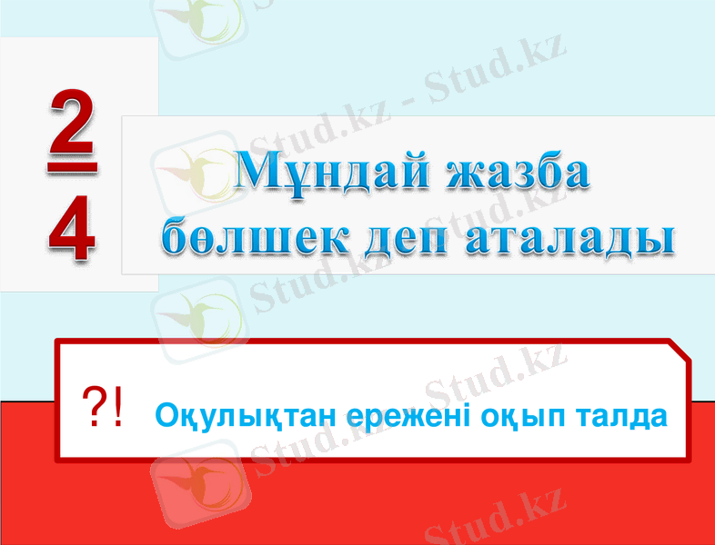 Ашық сабақ: 4-сынып математика - Бөлшектер мен үлестердің жазылуы