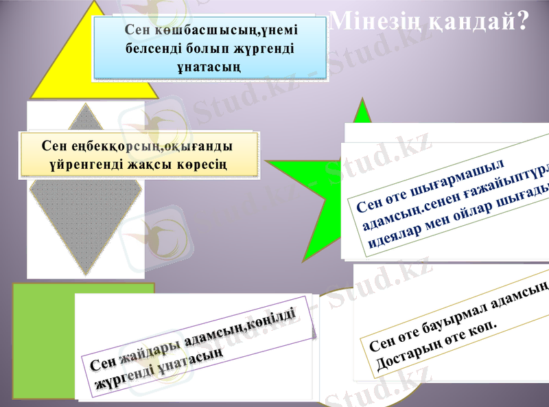 Оқушыларға фигураларды таңдата отырып, мінездеме беру.