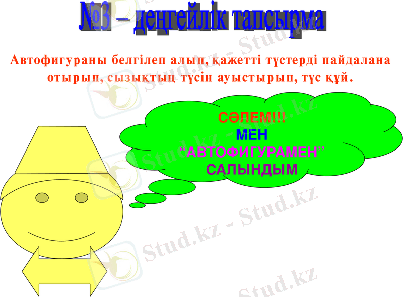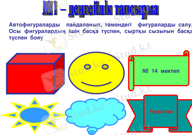 - автофигуралардың көмегімен бейне жасауды меңгеруіміз керек.