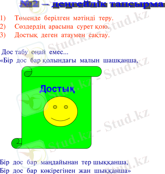1. Деңгейлік тапсырма /компьютерде жұмыс жасау/.