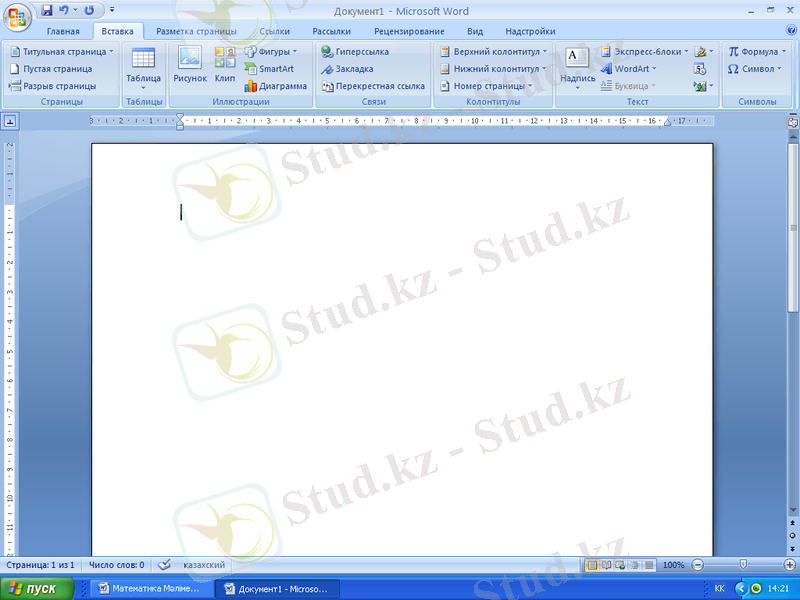 1. ВСТАВКА командасынан РИСУНОК батырмасын шертеміз.