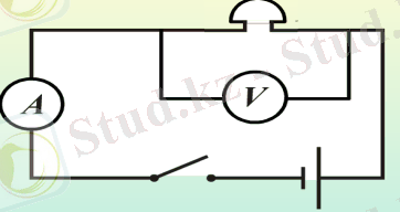 \[U={\frac{A}{q}}\]- Тізбектің берілген бөлігінде заряд орын ауыстырғанда, электр өрісінің атқарған жұмысының осы зарядқа қатынасы4. Өткізгіш ұштарындағы кернеуді қандай құралмен өлшейді және ол тізбекке қалай қосылады?