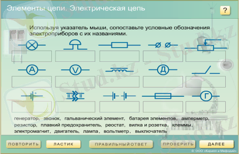Шартты белгілер бойынша сұлбадан (схемадан) құралдарды атау
