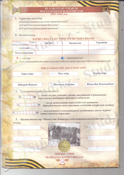 Қазақстанның Ұлы Отан соғысы жылдарындағы рөлі: 5-сыныпқа арналған сабақ жоспары