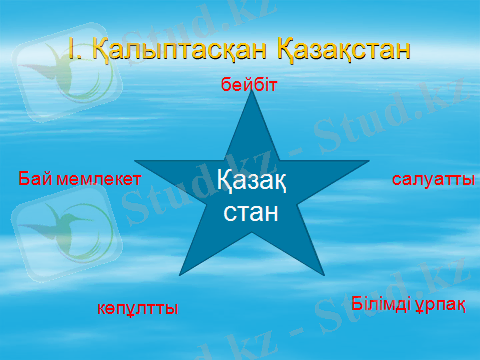 Жолдаудың 7 тарауы бар. Соның І тарауы «Қалыптасқан Қазақстан» деп аталады. Бұл ұғымды қалай түсінесіңдер, топтастырайық.