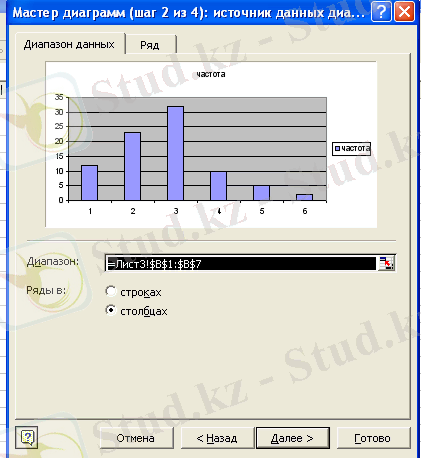 4) Диаграмма құрудың екінші қадамы - мәліметтер аралығын енгізу. Біздің мысалымызда мәліметтерді таңдау әрекеті оларды белгілеу арқылы орындалған еді.