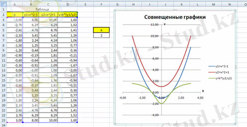 0, 3 қадаммен [- 3 ; 3] аралығында y1= x 2 -1, y2= x 2+1, y=К·(y1/ y2) функция графиктерін тұрғызу