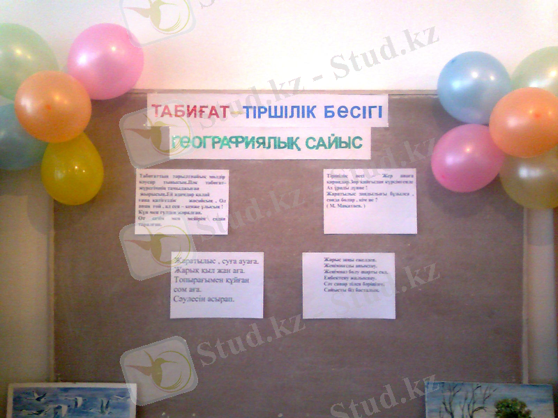 Көрнекіліктері: ҚР физикалық картасы, сайыстың аты жазылған плакат, табиғат суреттері, шарлар.