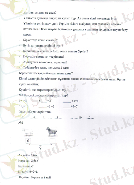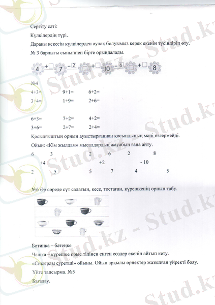 Бастауыш математикадан ашық сабақ: 6 санын қосу және азайтуды пысықтау