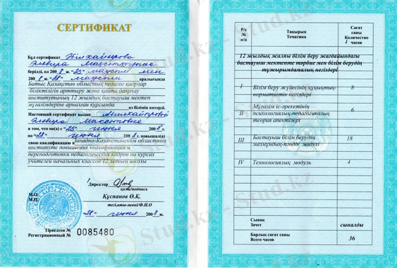 Білімін жетілдіру және біліктілік арттыру курстары