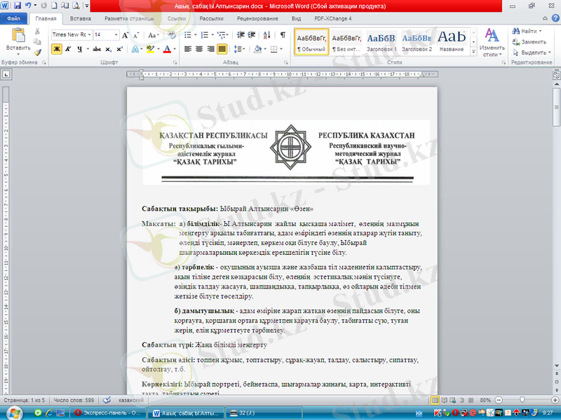 Сабақтың түрі: Аралас