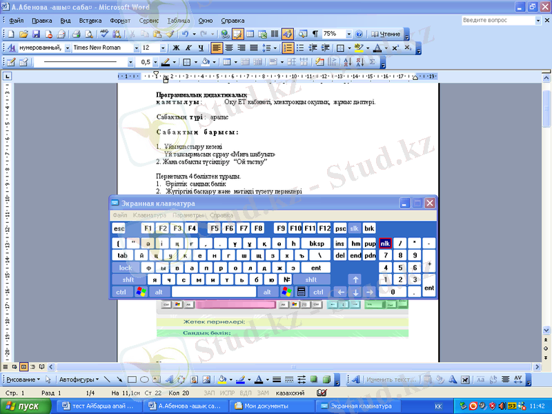 Кмопьютердегі экран пернетақтасын ашып, жұмыс жасау үшін: