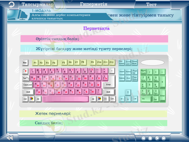 Оқушы білуі тиіс: Пернетақтадағы қосымша пернелердің атқаратын жұмыстарын