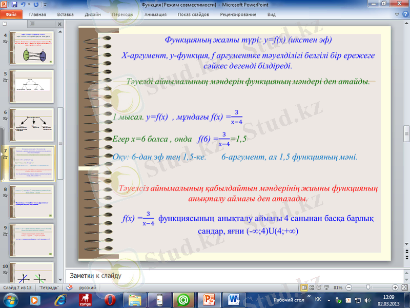 Тақырыбы: ФУНКЦИЯ ҰҒЫМЫ ЖӘНЕ ОНЫҢ ФОРМУЛАМЕН БЕРІЛУ ТӘСІЛДЕРІ.