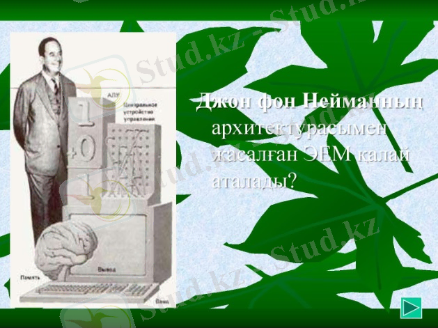 11 слайд Джон фон Нейманның архитектурасымен жасалған ЭЕМ қалай аталады?