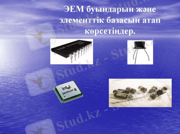 14 слайд ЭЕМ буындарын және элементтік базасын атап көрсетіңдер.