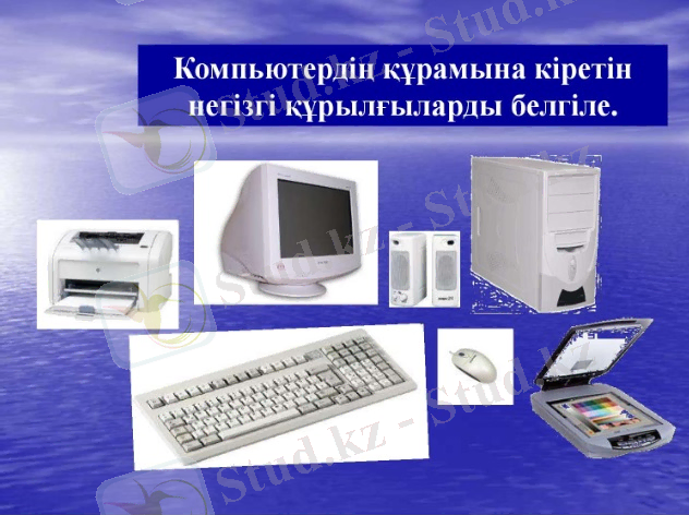 17 слайд Компьютердің құрамына кіретін негізгі құрылғыларды белгіле.