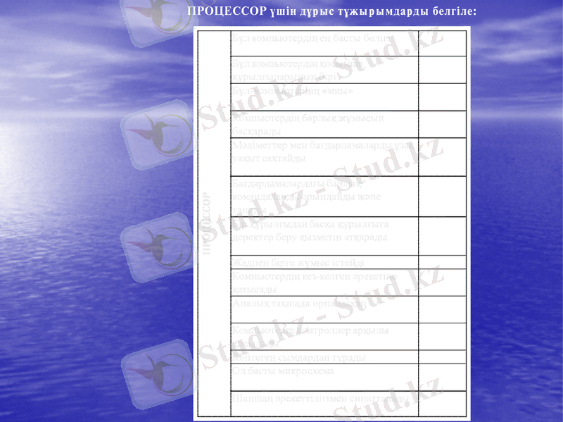23 слайд ПРОЦЕССОР үшін дұрыс тұжырымдарды белгіле: