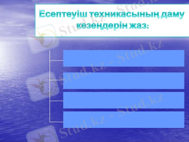 4 слайд Есептеуіш техникасының даму кезеңдерін жаз: