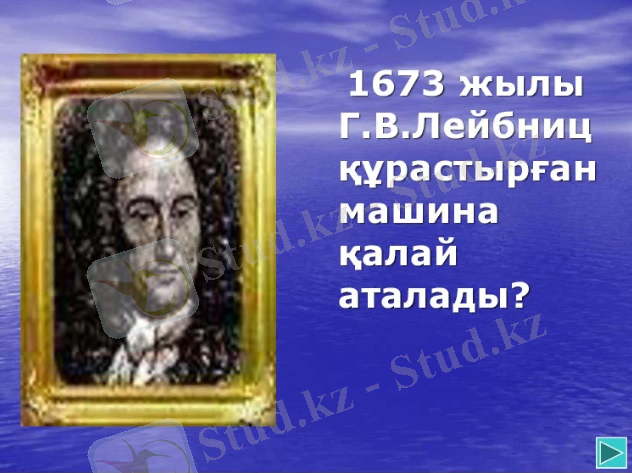 9 слайд 1673 жылы Г. В. Лейбниц құрастырған машина қалай аталады?