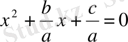 Толымсыз квадрат теңдеулер былай жазылады:
