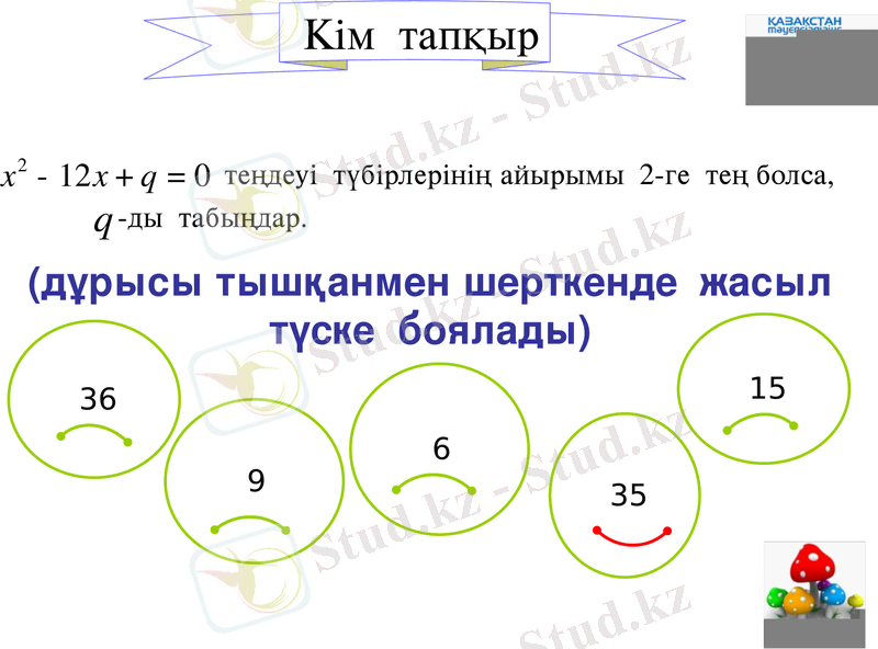 2. түбірлердің қосындысы мен көбейтіндісін табыңдар.