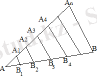 қосамыз. Бөліну нүктелері А1, А2, А3…. Аn арқылы АnВ түзуіне параллель түзулер жүргізсек, олар АВ кесіндісін n бөлікке бөлінгендігін аңғару қиын емес.