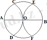 Шеңберді тең 4 бөлікке болу оңай. Ол үшін өзара перпендикуляр АС және