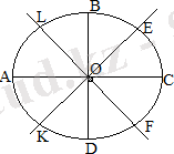 ВД диаметірін жүргізсек болғаны. А, В, С жӘне Д нүктелерін қосатын хордалар жургіссек, шеңберге іштей сызылған шаршы шығады. Шеңбер центірінен шаршы қабырғасына түсірілген перпендикуляр түзулер шеңберді тағы төрт нүктеде кияды. Сонда шеңберді А, L, В, Е, С, F, Д, К нүктелері тең 8 бөлікке бөледі.