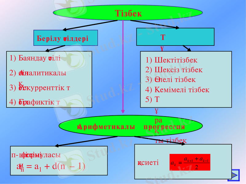Тізбек, арифметикалық прогрессия тақырыптары бойынша теориялық білімдерін тексеру. (тірек сызба арқылы)