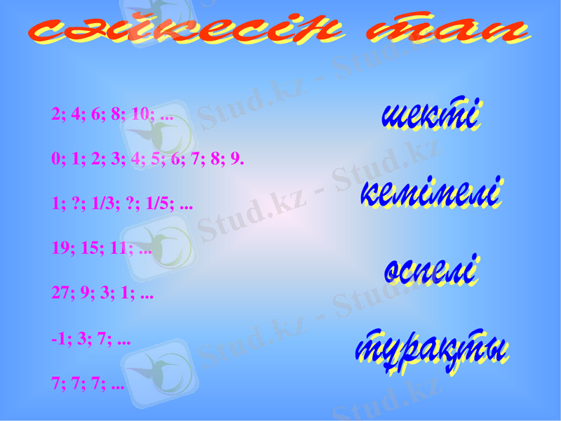 Сандарды өсу ретімен орналастырып, тізбектің заңдылығын анықта. Осы тізбек туралы мағлұмат жинақта.