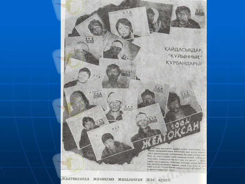 шықты. Олар “Тәуелсіздік керек Қазақ елінің көсемі сайлансын”деген тілек білдірді. Көптеген жастар түрмеге қамалды. Оларға желтоқсанның ызғарлы күнінде зәбір көрсетілді.
