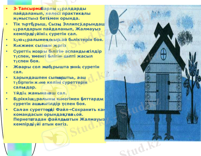 Білімділік: Оқушылардың графикалық редактор туралы алған білімдерін пайдалана отырып, сурет салуға үйрету.