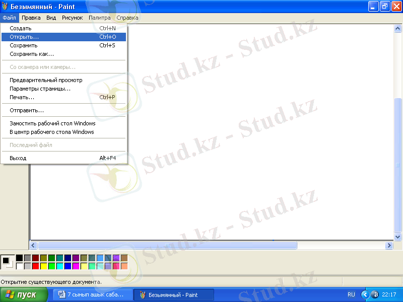 Дискіде сақтаулы суретті ашу үшін Файл - Открыть командасын орындау. Экранда диалогтық терезесі ашылады., онда меңзерді қажетті файлдың атына орналастырып, екі рет шерту.