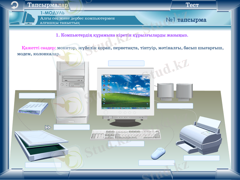 Электрондық оқулықты пайдаланып компьютердің құрамына кіретін негізгі құрылғыларды табыңыз.
