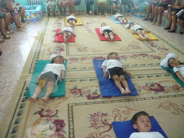 Тәрбиеші: Балалар, күннің көзі әлдеқашан өзінің нұрын шашып тұр. Сіздер, біраз біраз демалдыңыздар, енді ұйқыдан оянуларың керек. Кәне, барлығымыз ұйқымызды ашайық, ол үшін мынадай сергіту жаттығуын жасайық.