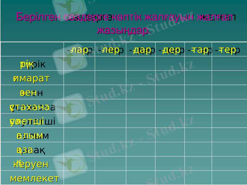 10. Берілген сөздерді топтап жазу: оқушылар автоқаламмен жұмыстанады.