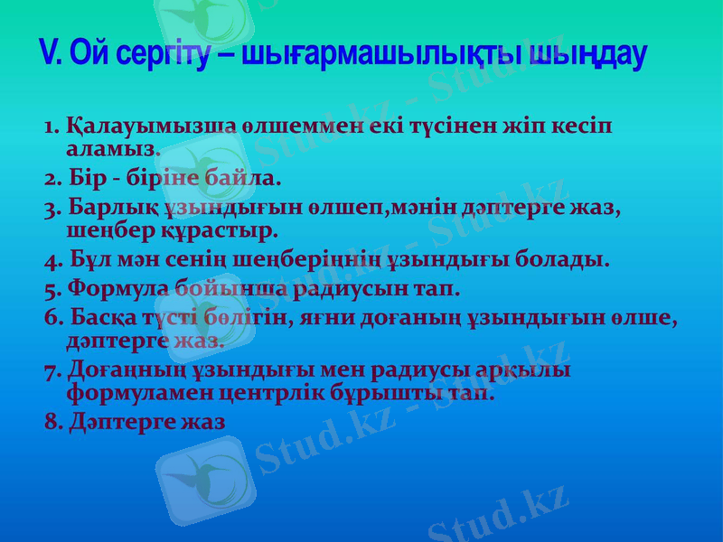 Тақырыбы: Шеңбердің ұзындығы, π саны тақырыбына есептер шығару.