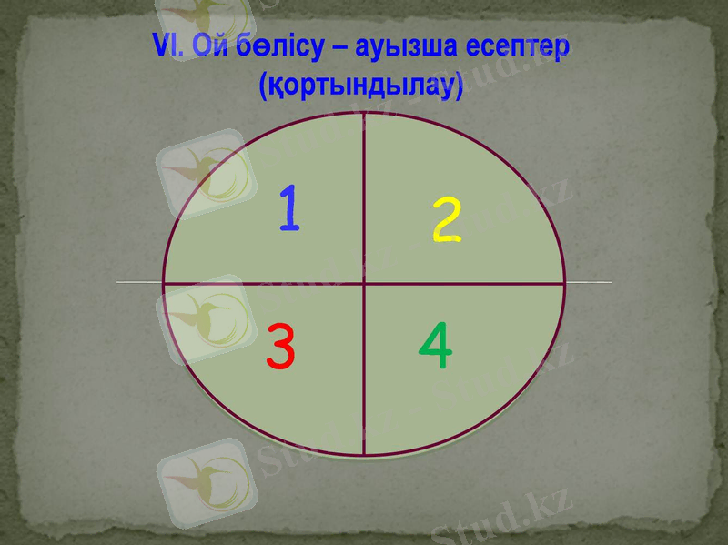 VI. Ой бөлісу - ауызша есептер (қорытындылау) .